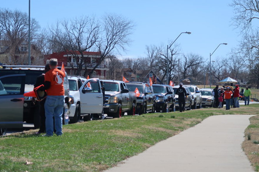 כ-160 מכוניות, אופנועים, רכבי שטח, משאיות ומכוניות תצוגה יצאו בשיירה לאורך פארק רוד בספרינג ואלי מול רחוב 29, בשבת, 26 במרץ, לרכיבה השישית בקנזס סיטי של 'מאוחדים בשלום' ולעצרת בפארק ספרינג ואלי בקנזס סיטי, מיזורי. הגיוון של רכיבות השלום ועצרות השלום מראה לכולם איך זה נראה כשמתאחדים בשלום.