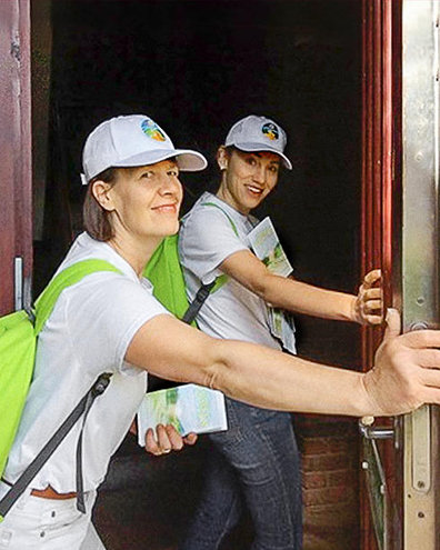 בשלב הראשון של הפרוייקט של סניף 'הדרך אל האושר' לונדון הם הגיעו לכמעט 6,000 בתי אב עם חלוקת חוברות מדלת לדלת ויצירת קשרים עם עסקים מקומיים. כדי לעשות זאת, צוות 'הדרך אל האושר' הדפיס מפה מפורטת של האיזור וסימן כל מיקום אחרי שהוא סיים להפיץ בו. הם גם הכינו רשימה של כל הקבוצות הרלוונטיות באיזור ויצרו קשר עם כל אחת מהן כדי להיפגש איתן ולגייס אותן למשימה, כדי שהקבוצות האלה יוכלו לאחר מכן ליצור קשר עם החברים בהן.